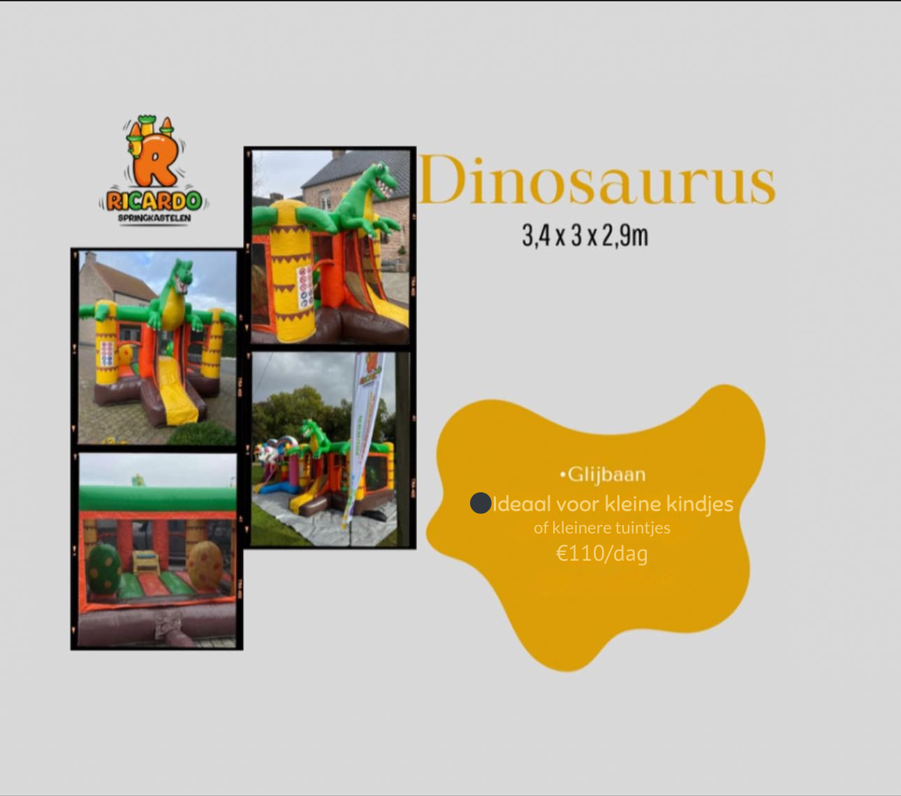Heb je dus speciale verzoekjes, zoals bijvoorbeeld een huifkarrentocht te paard of tractor, een springkasteel,...? Stel ze gerust via het aanvraagformulier, wij kunnen steeds kijken volgens beschikbaarheid van de mensen waar we hiervoor mee samenwerken of het mogelijk is! Voor de springkastelen hebben wij een standaard aanbod, u kan dit ook hieronder terugvinden.